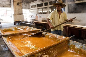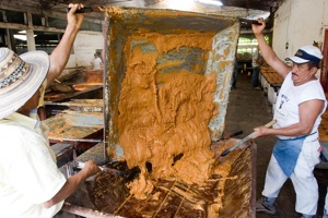 “Cuando la miel está en el punto de hacer panela, el templador saca el temple a la canoa, para batirlo con un remo de madera. Se dice que batir el temple es sacarle el aire”