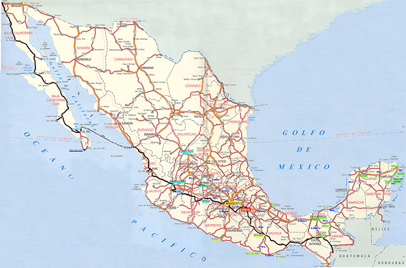 México: Entramos a México un 26 de diciembre del 2009. Durante cuatro meses recorremos este gigante de América Latina, sinónimo de hospitalidad, diversidad y alegría, aunque el día a día esté siempre teñido de un color oscuro, el color de la corrupción y el engaño, de manos de las clases pudientes las cuales aún y ser una minoría, asfixian al pueblo con mentiras y sobornos. Esta es tierra de grandes contrastes, hay días que amas este país y otros lo odias con rabia y desesperación.