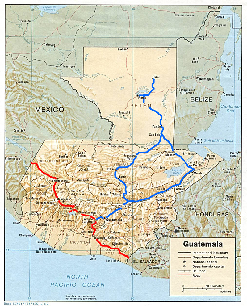 Antigua nos reservará el privilegio de conocer a Charly, de Argentina, y a Amado “El Canario”. Con Amado y su furgoneta “La Matilde”, recorreremos el interior del país (línea azul), siendo nuestro objetivo la ciudad de Tikal.